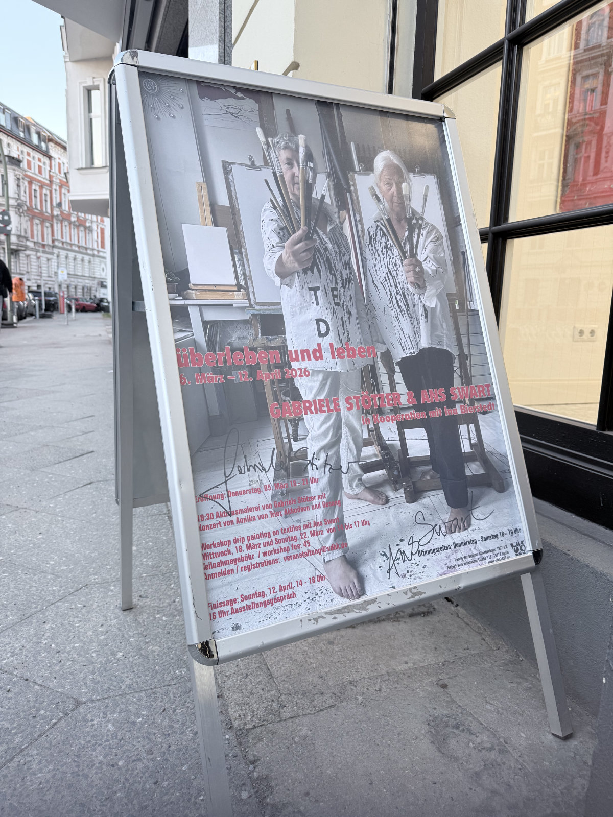 Mit der Ausstellung „überleben und leben“ zeigt der Verein der Berliner Künstlerinnen 1867 Ergebnisse der künstlerischen Zusammenarbeit von Ans Swart und Gabriele Stötzer, die sich schon seit über 30 Jahren kennen und schon einige gemeinsame Performances gemacht haben. Die Ausstellung ist vom 6. März bis 12. April 2026 zu sehen. Die Eröffnung findet am 5. März 2026, 18 Uhr statt.